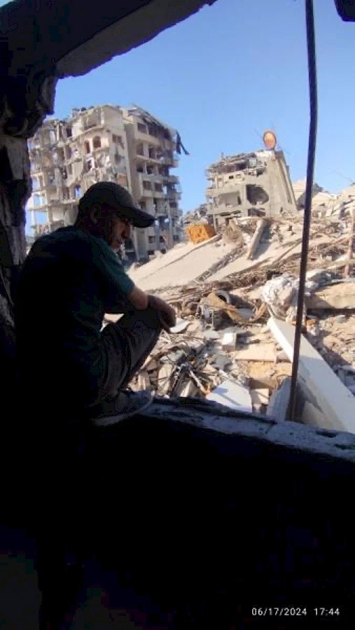 I ja sam napustio svoju kuću, lutajući između raznih mesta u potrazi za hranom. Na putu sam prošao pored Kulturnog centra Rašad Šava, nekada najvećeg i najboljeg mesta za velike događaje u Gazi. Zastao sam da se slikam ispred njegovog uništenog ulaza, okružen sećanjima na biblioteku Dajane Saba, na ogromne sale i zidove koji su šaputali o svojoj povezanosti sa rečima i idejama.