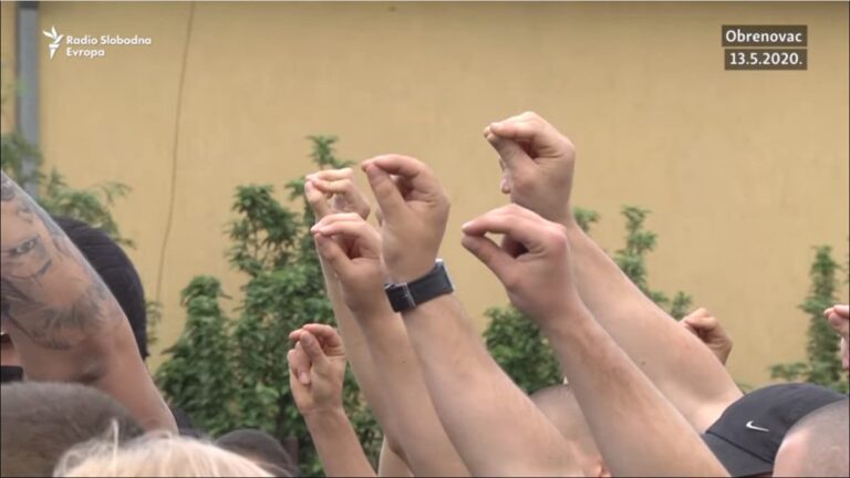Oko 50 ekstremnih desničara i pripadnika pokreta „Levijatan“ i „Živim za Srbiju“ okupilo se juče ispred migrantskog centra u Obrenovcu, u koji je prošle nedelje automobilom uleteo njihov saborac Filip Radovanović koji je tom prilikom uhapšen.