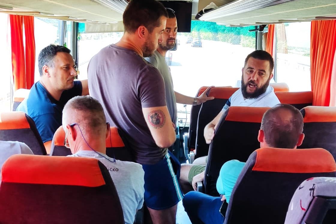 Iz jednog od autobusa kojima su radnici Fijata došli u Beograd; Foto: Aleksandar Korać