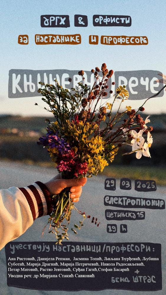 Književna organizacija ARGH! i književno društvo „Orfisti“ organizuju solidarno veče pomoći profesorima i nastavnicima 29. marta od 19 časova u Elektropioniru (Cetinjska 15).