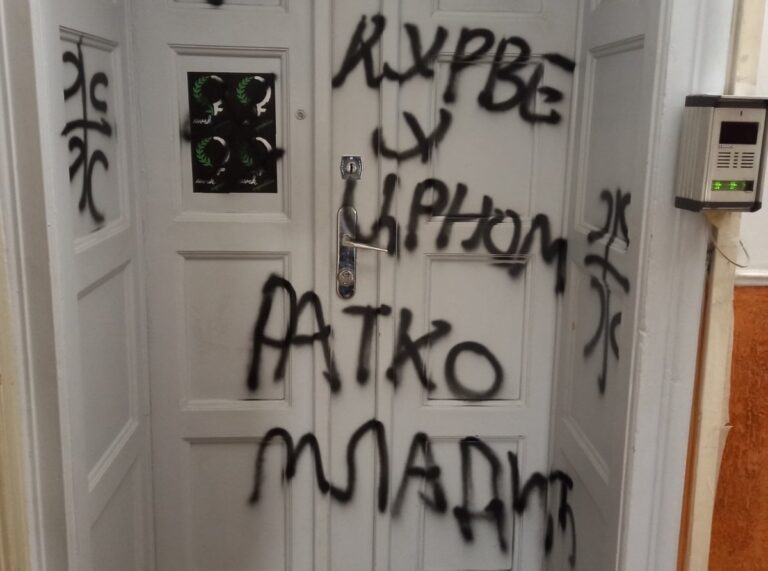 U noći između 22. i 23. oktobra nepoznati počinioci su na ulaznim vratima prostorija Žena u crnom u Beogradu crnim sprejom ispisali „Kurve u crnom“, „Ratko Mladić“ i iscrtali pet krstova sa četiri ocila.