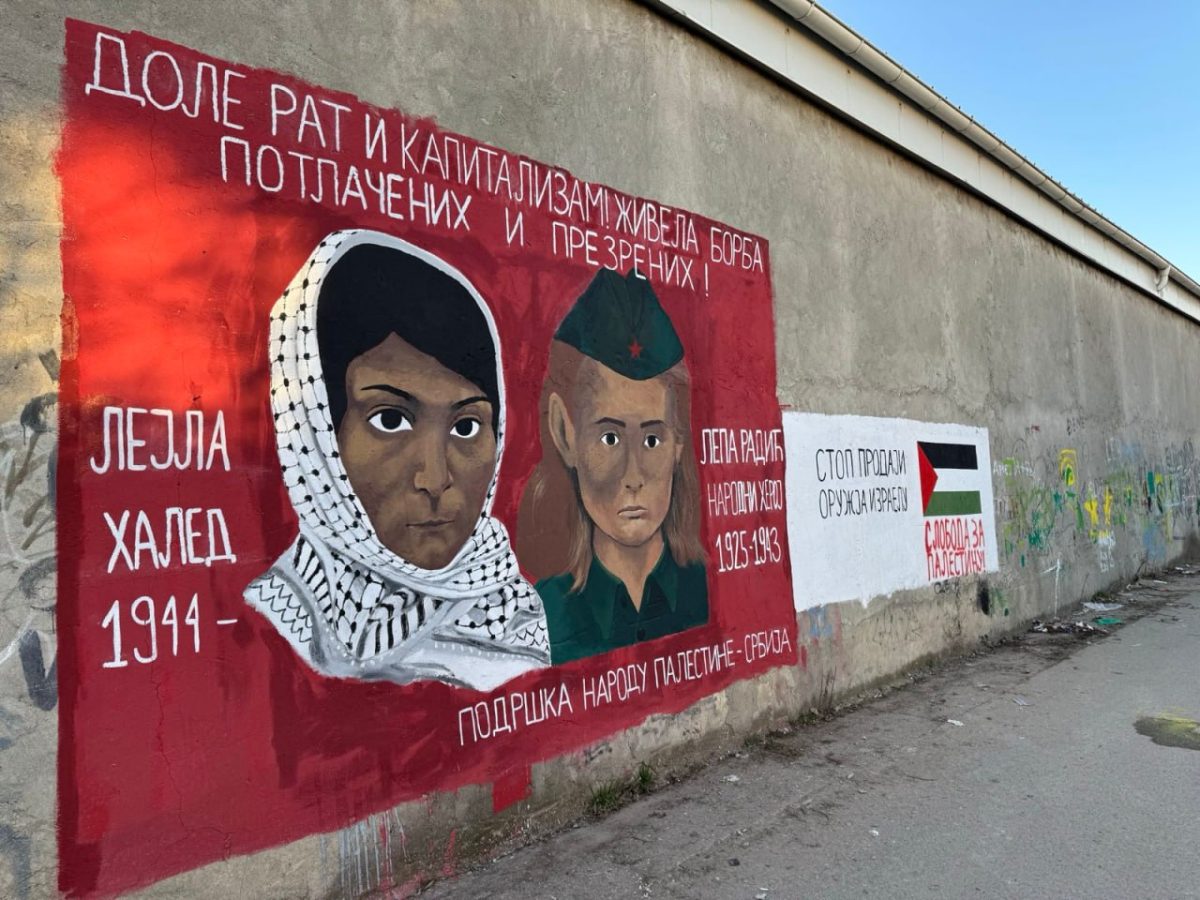 Iznad likova Lejle i Lepe piše: „Dole rat i kapitalizam! Živela borba potlačenih i prezrenih!“ Pored murala aktivisti su ofarbali palestinsku zastavu i napisali „Stop prodaji oružja Izraelu!“ Podsećamo da je srpska vlada u 2024. godini poslala oružje Izraelu u vrednosti od 42 miliona evra, što je 30 puta više u poređenju sa 2023. godinom.