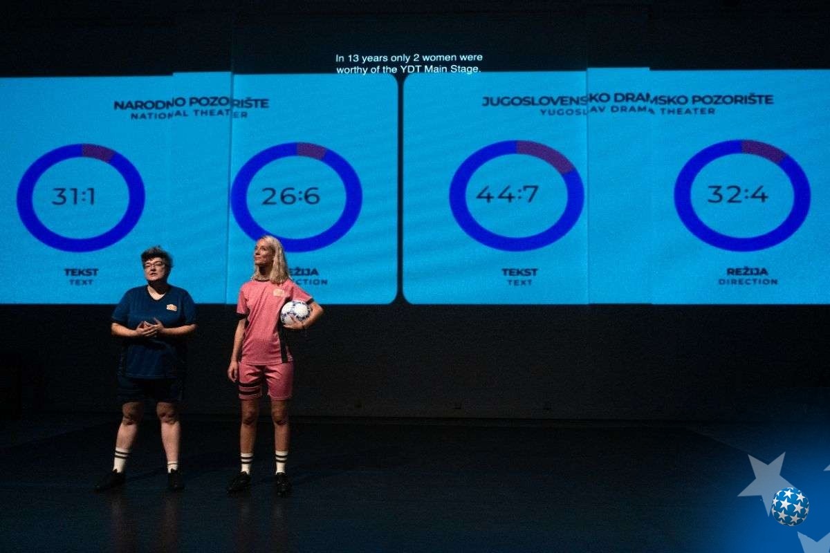 S tim u vezi, autorke su u izvedbi predstave napravile paralelu između sveta pozorišta i fudbala, naglašavajući da su oba sastavljena od kompleksne mreže odnosa moći.