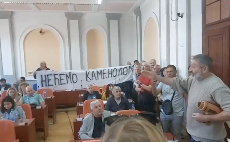 Stanovnici sela Mali Izvor se merdevinama popeli u gradsku skupštinu u očajničkom pokušaju da spreče kamenolom