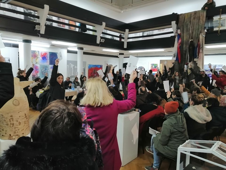 Takođe, kako dalje navode u saopštenju, članstvo se gotovo jednoglasno izjasnilo da neće podleći bilo kakvim pritiscima gradskih i republičkih institucija da napusti prostor Umetničkog paviljona „Cvijeta Zuzorić“ ni tokom najavljene restauracije.